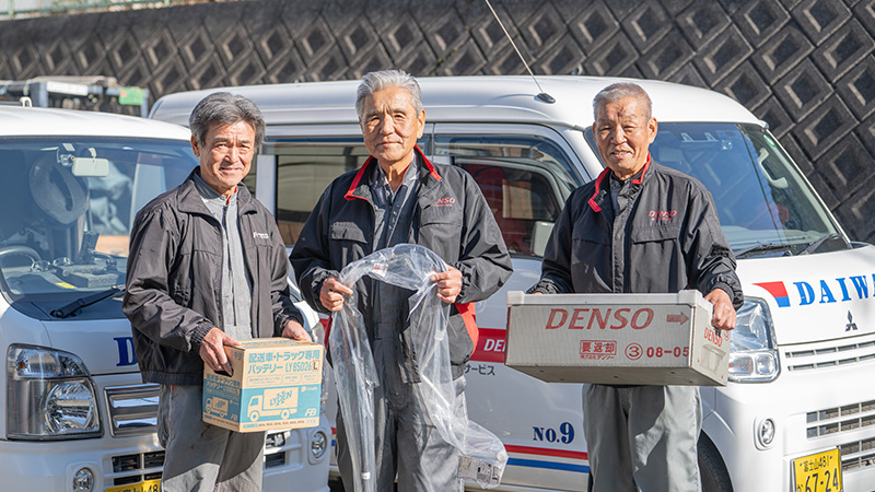 私たち大和自動車電機産業は、電装という専門分野に特化した企業です。自動車の電装品の修理・取付・メンテナンスといった作業を、スタッフたちの専門性を活かしながら、チーム一丸となって進めていきます。
