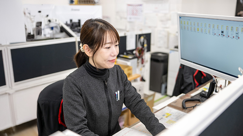 事務担当は、お客さま対応をはじめ、修理に必要な部品の検索、部品の発注、整備士のスケジュール管理、納品物の仕分け、見積書や請求書の発行など、業務全体をスムーズに進めるための事務サポートを行います。